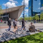 Cyclists crossing Rotterdam Central designed by Benthem Crouwel Architekten.