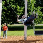MEETING, PLAYING, ENJOYING; UP IN THE AIR AT THE SWING PARK