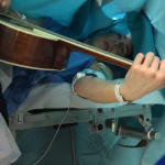 Jelle van Tilburg plays the guitar during awake brain surgery