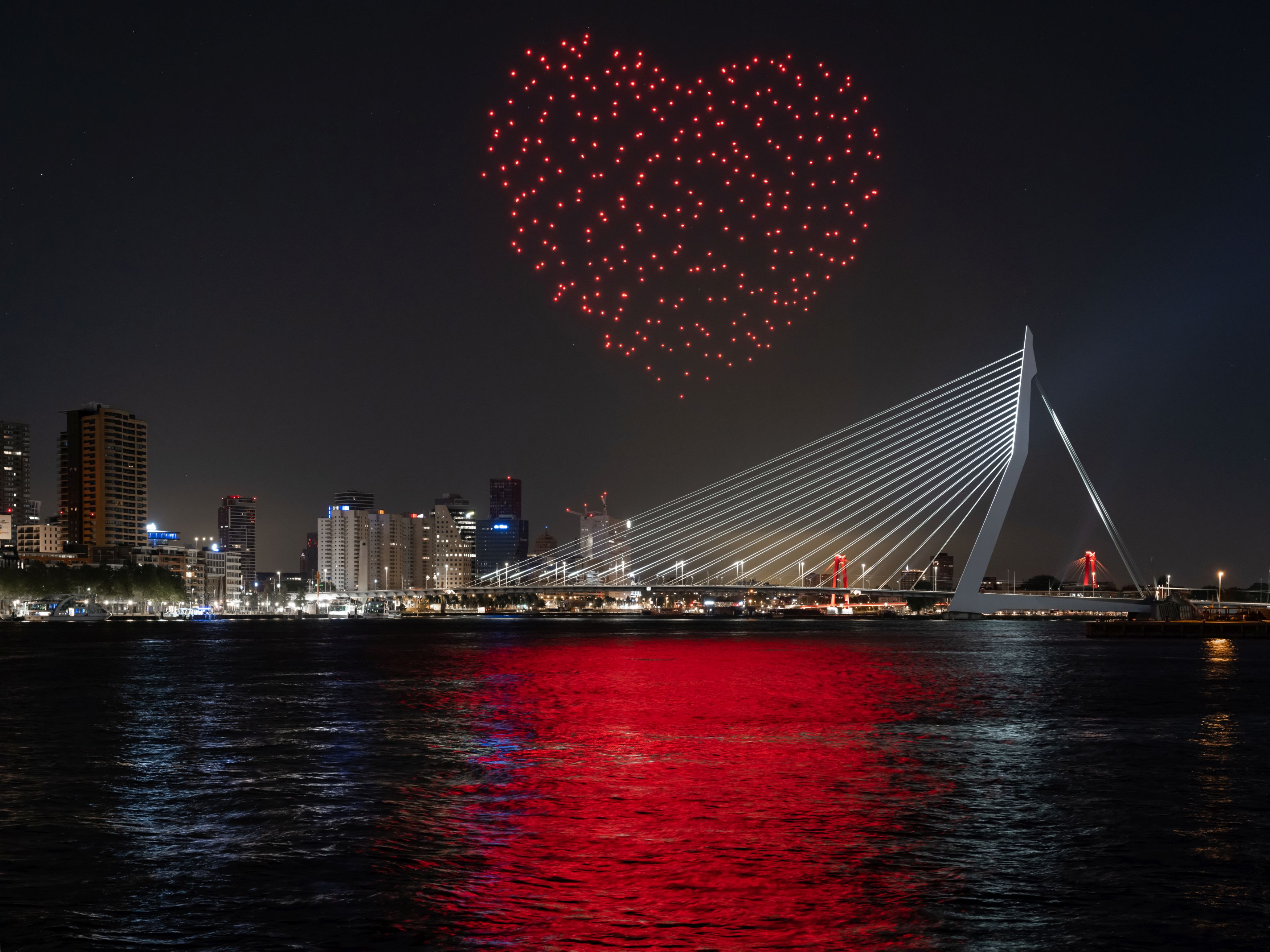 Studio DRIFT werkt regelmatig samen met componist en pianist Joep Beving. Ook tijdens de droneshow is zijn muziek te horen. Lonneke Gordijn: “De muziek brengt een bepaald gevoel met zich mee dat enorm goed past bij wat je ziet gebeuren in de lucht. Overdag speelt Joep ook in het Erasmus MC. Met het project willen we Rotterdammers, en in het bijzonder de mensen die voor ons vechten, bedanken en een hart onder de riem steken.”Tekst door: Renee SchouwenburgHeaderfoto: Ossip van Duivenbode